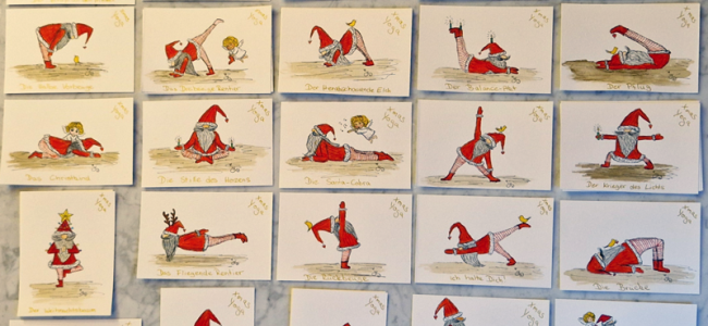 Das war die Geburtsstunde von Xmas Yoga und Yoginikolaus, der versucht dem alljährlichen Weihnachtsstress mit Xmas Yoga zu entfliehen.