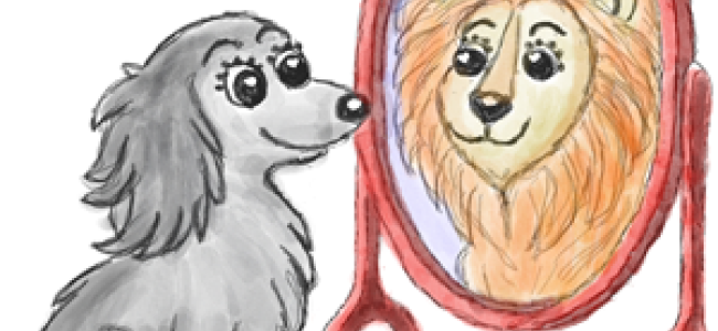 Ein Freund erzählte kürzlich, dass seine Hündin "Motte", immer wenn sie in den Spiegel schaut, eine Löwin sieht - und auch so im Alltag agiert.